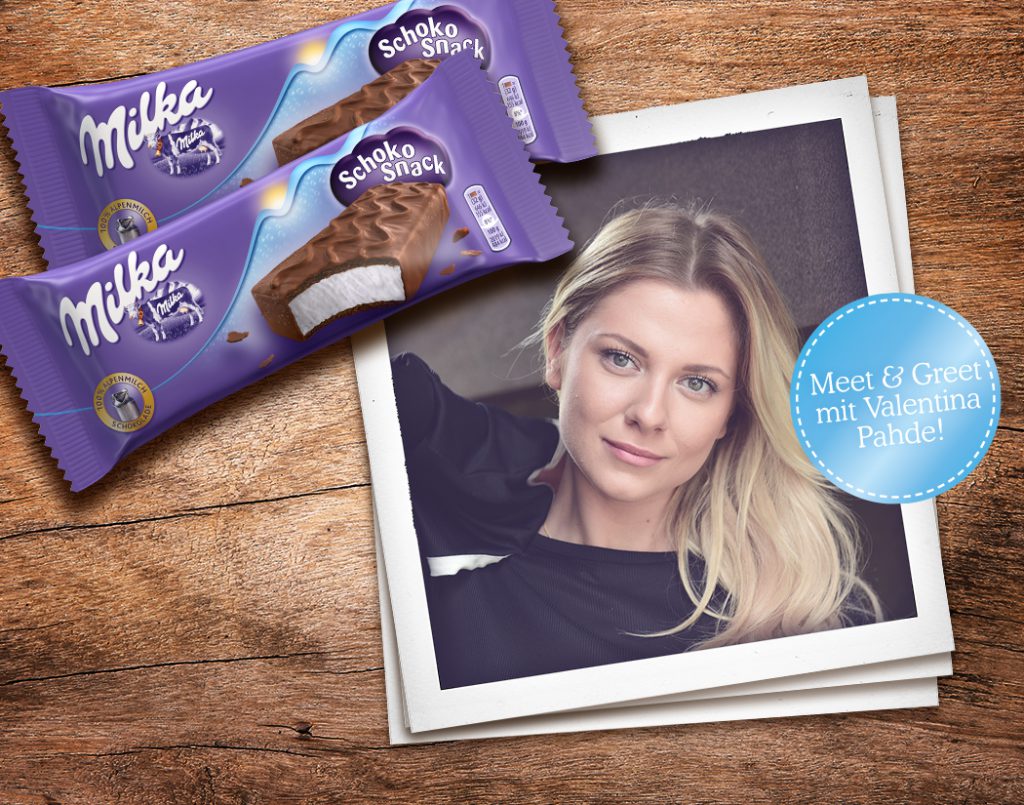 Als absolutes Highlight am Milka Schoko Snack Day hast du die einmalige Chance GZSZ-Star und Influencerin Valentina Pahde persönlich zu treffen. Schnapp dir ein Autogramm oder schieß ein Selfie beim offiziellen Meet & Greet! Übrigens, auch Valentina ist großer Fan unseres gekühlten Schoko Snacks 😉