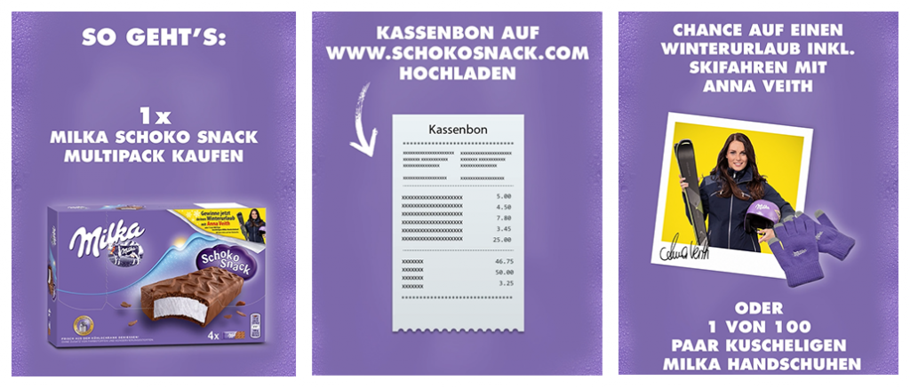 Ab sofort habt ihr beim Kauf unseres gekühlten Milka Schoko Snack die Chance auf einen Winterurlaub in Schladming inklusive Meet & Greet mit Anna Veith!